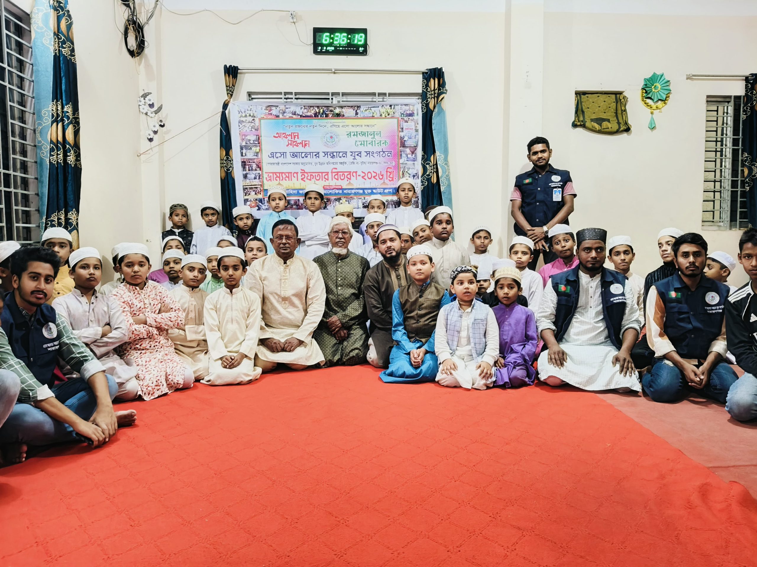 নারায়ণগঞ্জ প্রতিনিধি:গণপ্রজাতন্ত্রী বাংলাদেশ সরকার অনুমোদিত যুব উন্নয়ন অধিদপ্তরের অন্তর্ভুক্ত রেজিষ্ট্রেশন নারায়ণগঞ্জ -৭০/ সদর-৩৫ " এসো আলোর সন্ধানে যুব সংগঠন" এর উদ্যোগে প্রতি বছরের ন্যায় মাস ব্যাপী ইফতার বিতরণের আজ ১২তম দিনে নূরে মদিনা হিফজুল কোরআন মাদ্রাসার বাচ্চাদের মাঝে ইফতার বিতরণ করা হয় ।