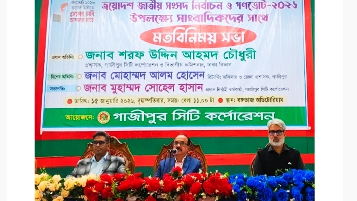 এস এম ইকবাল হোসেন, সম্পাদক : গাজীপুরে আসন্ন ত্রয়োদশ জাতীয় সংসদ নির্বাচন এবং 'গণভোট ২০২৬' সফলভাবে সম্পন্ন করার লক্ষ্যে সাংবাদিকদের সাথে এক মতবিনিময় সভা অনুষ্ঠিত হয়েছে।