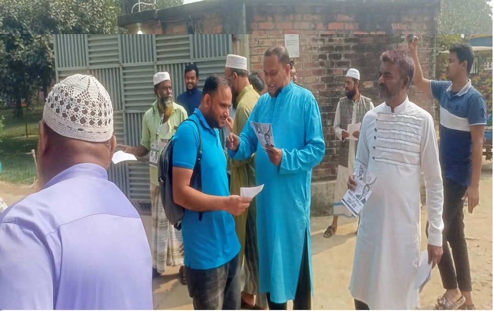 রবিবার (৮ ফেব্রুয়ারি ২০২৬) দুপুরে হারেজ আলী উচ্চ বিদ্যালয় ভোটকেন্দ্রের অন্তর্গত করমতলা এলাকায় জননেতা এ কে এম ফজলুল হক মিলনের ধানের শীষ প্রতীকের পক্ষে করমতলা ইন্টিগা গার্মেন্টস (মতিন এর গার্মেন্টস) এর শ্রমিকদের নিকট ভোট প্রার্থনা ও নির্বাচনী প্রচারণায় অংশ নেন রতন দেওয়ান, আরিফ দেওয়ান, সোহাগ সরকার, তুহিন সরকার, সালাউদ্দিন মাস্টার, শামীম মিয়াসহ আরো অনেকে।