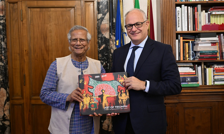 তিনি অধ্যাপক ইউনূসকে তাঁর কার্যালয়ে উষ্ণ অভ্যর্থনা জানান। ঐতিহাসিক রোমান সাম্রাজ্যের ধ্বংসাবশেষের মাঝে অবস্থিত এ কার্যালয় জুলিয়াস সিজারের আমলের নিদর্শনের অংশ।