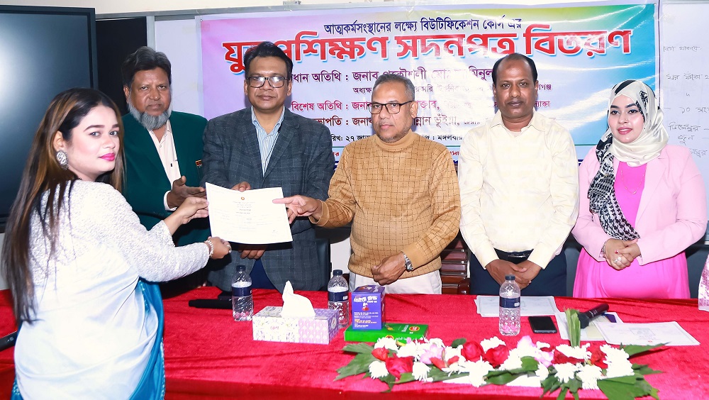 নিজস্ব প্রতিনিধি, নারায়নগঞ্জ : আত্মকর্মসংস্থানের লক্ষ্যে উদ্যোক্তা তৈরিতে মানব কল্যাণ পরিষদ অপরিসীম ভূমিকা রাখছে। তারই ধারাবাহিকতায় ২৭ জানুয়ারি মঙ্গলবার নারায়ণগঞ্জের পাঠানটুলী এলাকায় বিউটিফিকেশন কোর্সের ৩০ জন শিক্ষার্থীদের মাঝে যুব প্রশিক্ষণ সনদপত্র বিতরণ করেছে সংগঠনটি।
